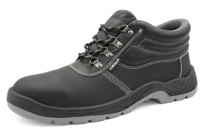 Normy: EN ISO 20345 Materiał cholewki: skóra bydlęca, Podszewka: oddychająca tkanina MESH Podeszwa: PU Podnosek: stalowy Rozmiary: 39-48 EU