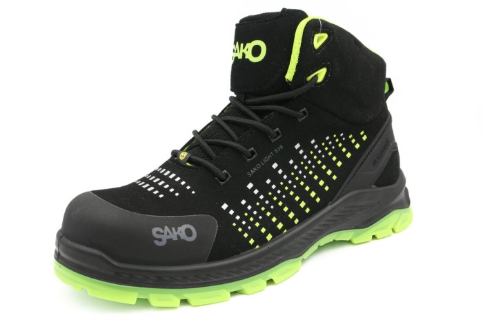 Trzewiki ochronne SAKO 05-005 S3 ESD to doskonałe połączenie nowoczesnych materiałów i zaawansowanych technologii, zapewniające najwyższy poziom ochrony i komfortu w wymagających środowiskach pracy. Wykonane z czarnej wodoodpornej mikrofibry, gwarantują trwałość oraz odporność na wilgoć, a wzmocnienie pięty z TPU zwiększa stabilność i przedłuża żywotność obuwia.