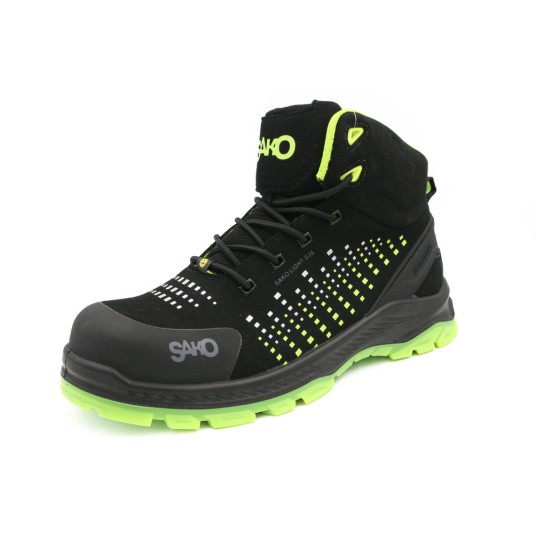 Trzewiki ochronne SAKO 05-005 S3 ESD to doskonałe połączenie nowoczesnych materiałów i zaawansowanych technologii, zapewniające najwyższy poziom ochrony i komfortu w wymagających środowiskach pracy. Wykonane z czarnej wodoodpornej mikrofibry, gwarantują trwałość oraz odporność na wilgoć, a wzmocnienie pięty z TPU zwiększa stabilność i przedłuża żywotność obuwia.