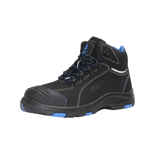 Trzewiki robocze Proxima S3 HRO NM to wytrzymałe i wszechstronne obuwie do wymagających warunków. Cholewka ze skóry nubukowej (1.6-1.8 mm) jest wodoodporna, a oddychająca podszewka z siatki zapewnia komfort. Kompozytowy podnosek i kevlarowa wkładka chronią przed uderzeniami i przebiciem, zachowując lekkość (non-metal). Antypoślizgowa podeszwa PU/guma jest odporna na oleje, wysokie temperatury (HRO) i ścieranie. Właściwości antystatyczne zwiększają bezpieczeństwo. Buty spełniają normy S3 FO SC SR, idealne dla budownictwa, przemysłu i logistyki.