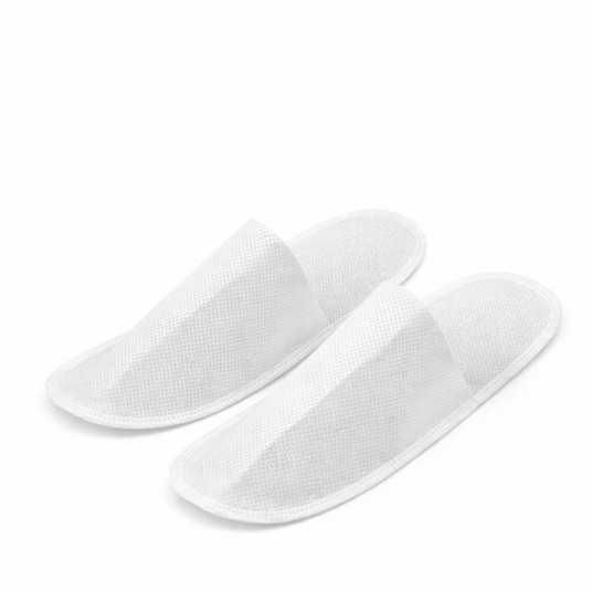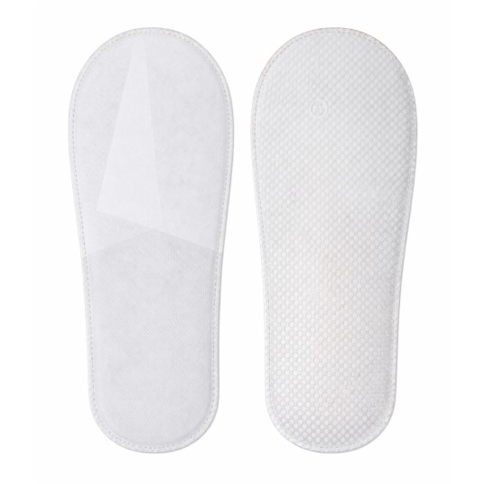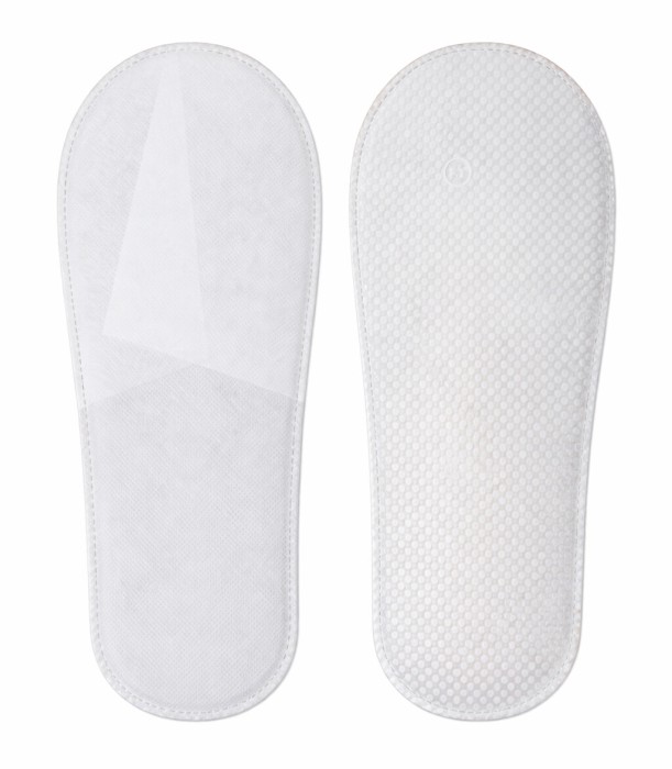 Jednorazowe kapcie wykonane z wytrzymałej włókniny z mocnym zgrzewem. Posiadają zakryte palce oraz kropkowaną podeszwę antypoślizgową, zapewniającą lepszą przyczepność. Uniwersalny rozmiar, grubość materiału 4 mm PE. Idealne do hoteli, spa, gabinetów kosmetycznych i medycznych.