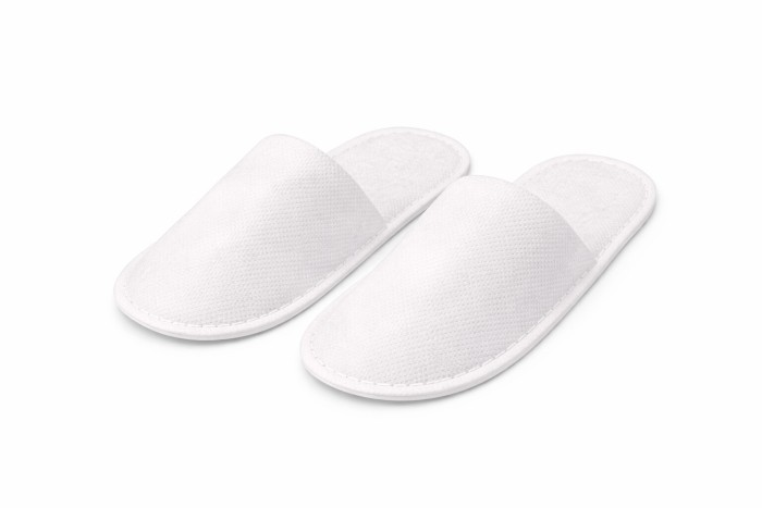 Białe kapcie z włókniny (non-woven), szyte z usztywnianą podeszwą z pianki EVA o grubości 3 mm. Zakryte palce zapewniają większy komfort i higienę, a uniwersalny rozmiar pasuje na większość stóp. Idealne do hoteli, SPA, salonów kosmetycznych i gabinetów medycznych.