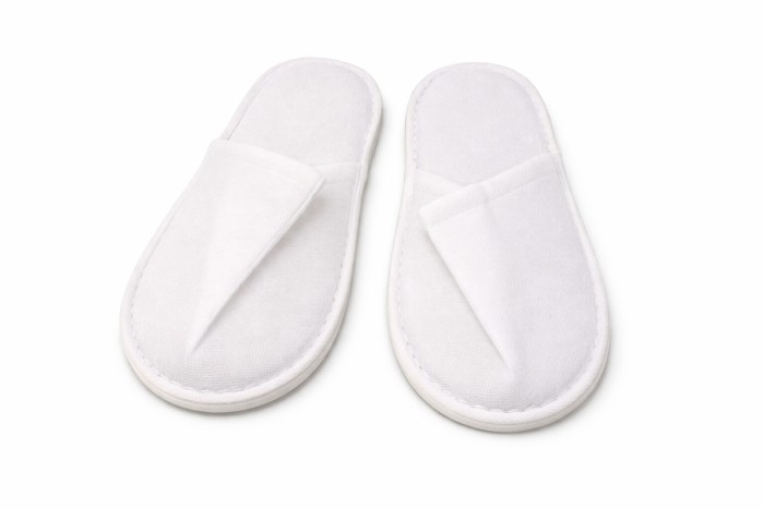 Jednorazowe kapcie wykonane z miękkiego poliestru (PES), w kolorze białym, z zakrytymi palcami. Uniwersalny rozmiar pasujący na większość stóp. Podeszwa z pianki EVA o grubości 3 mm zapewnia komfort i izolację od podłoża. Każda para pakowana oddzielnie dla zachowania higieny.