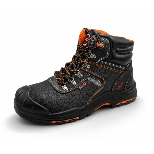 - trzewiki ochronne ze skóry licowej - cholewka; skóra bydlęca tłoczona o grubości 1,8 - 2,0 mm - podszewka; laminowana, oddychająca tkanina MESH - wkładka wewnętrzna; anatomiczny kształt, z materiału EVA o dużej chłonności, antystatyczna - podeszwa PU/GUMA; HRO (odporna na kontakt z gorącą powierzchnią do 300°C), SRC, olejoodporna, antystatyczna - z kompozytowym podnoskiem - kevlarowa wkładka antyprzebiciowa, - skóra hydrofobowa