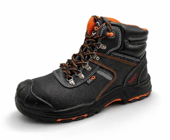 - trzewiki ochronne ze skóry licowej - cholewka; skóra bydlęca tłoczona o grubości 1,8 - 2,0 mm - podszewka; laminowana, oddychająca tkanina MESH - wkładka wewnętrzna; anatomiczny kształt, z materiału EVA o dużej chłonności, antystatyczna - podeszwa PU/GUMA; HRO (odporna na kontakt z gorącą powierzchnią do 300°C), SRC, olejoodporna, antystatyczna - z kompozytowym podnoskiem - kevlarowa wkładka antyprzebiciowa, - skóra hydrofobowa