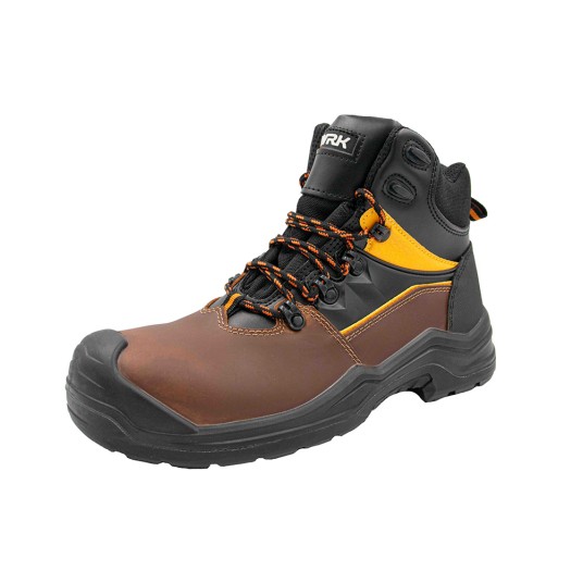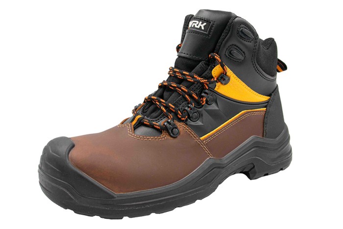Trzewiki ochronne Volans MC S3 SRC w kolorze brązowym to doskonały wybór dla osób, które szukają obuwia zapewniającego bezpieczeństwo i trwałość. Wykonane z wytrzymałej skóry typu action crazy horse, charakteryzują się solidnością i stylowym wyglądem. Brak metalowych elementów sprawia, że są lżejsze i bardziej elastyczne. Podeszwa z poliuretanu (PU/PU) jest antypoślizgowa, antyelektrostatyczna i olejoodporna, co zapewnia doskonałą przyczepność i bezpieczeństwo. Kompozytowy podnosek chroni przed uderzeniami, a podeszwa bezpieczeństwa z kevlaru zabezpiecza przed przekłuciami. Dodatkowo, czarna tkanina mesh jest oddychająca, co gwarantuje komfort nawet przy długotrwałym noszeniu.