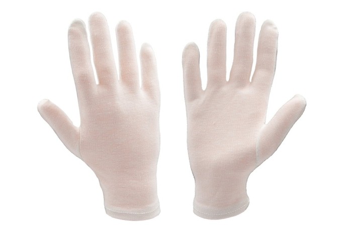 Charakterystyka: Skład [%]: 100% bawełna Masa powierzchniowa [g/m2]: 15g/rękawica Normy: EN ISO 21420, EN 388 (0,1,1,1,X) Pakowanie: 12 par/opakowanie, 600 par/karton Kolory: Biała dzianina Rozmiary: S-XL (7-10)